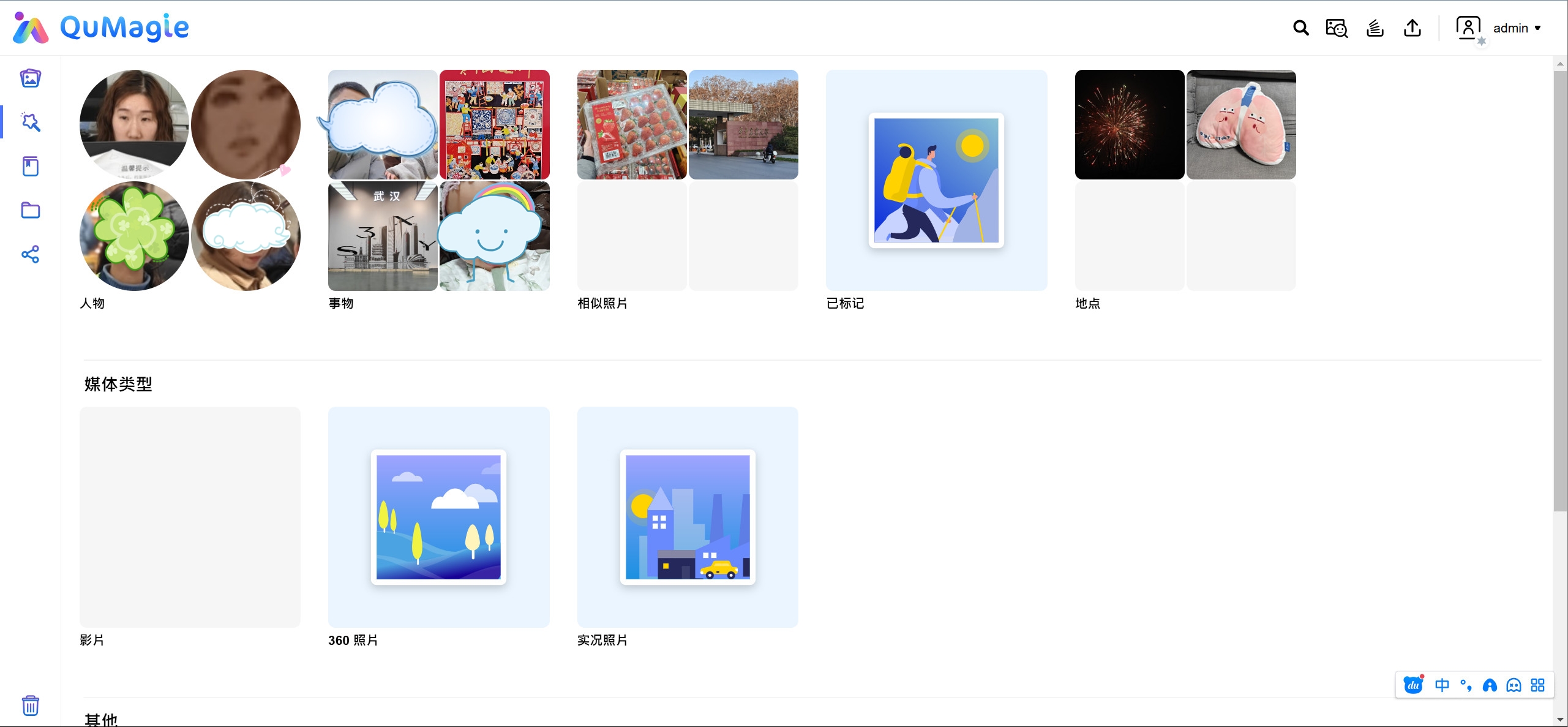 QuMagie AI相册是威联通NAS上的智能相册管理工具,支持自动分类照片和视频,通过AI识别场景、人物、地点等,方便快速查找。它还能自动生成回忆相册,支持人脸识别和智能搜索,比如输入“海滩”就能找到我们在海滩上的相关照片。