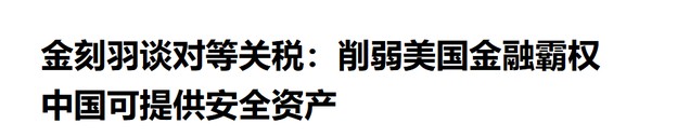 新京报:2025-04-22:金刻羽谈对等关税:削弱美国金融霸权 中国可提供安全资产