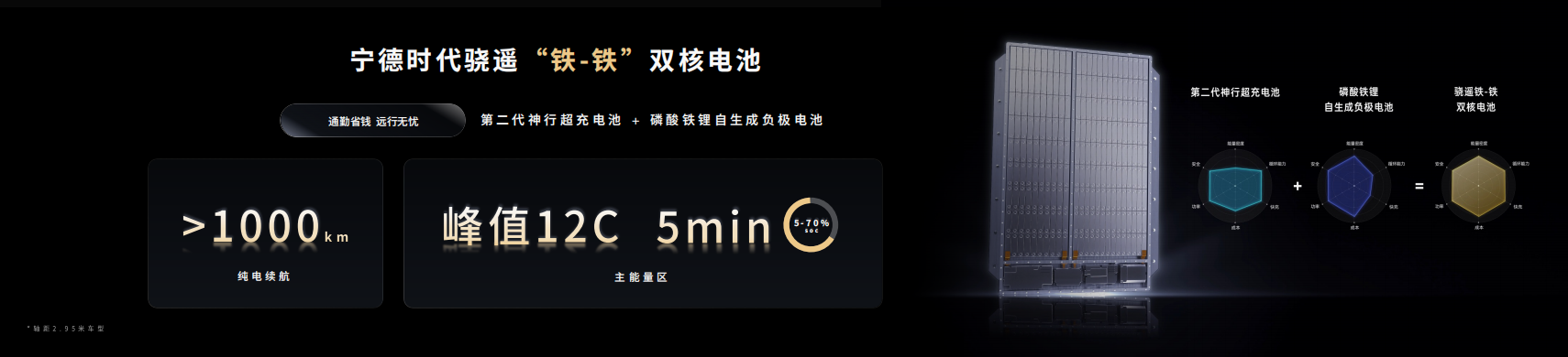 宁德时代骁遥双核电池以用户需求为中心,让不同化学体系充分“分工协作、取长补短”,突破单一化学体系难以兼顾全场景的技术瓶颈,让不同成本区间、不同应用场景下的电池性能定制化成为可能。
