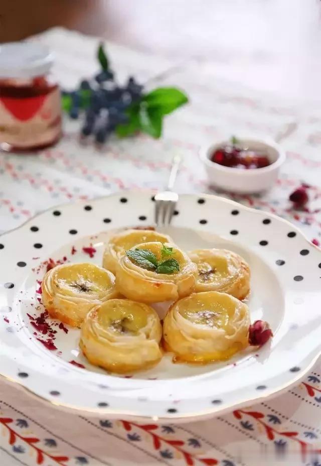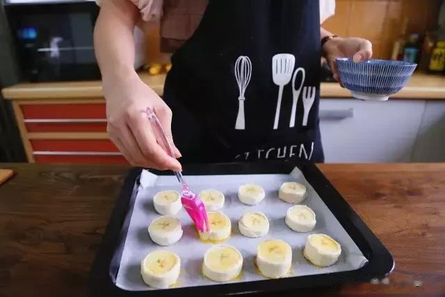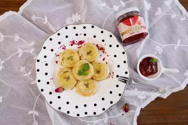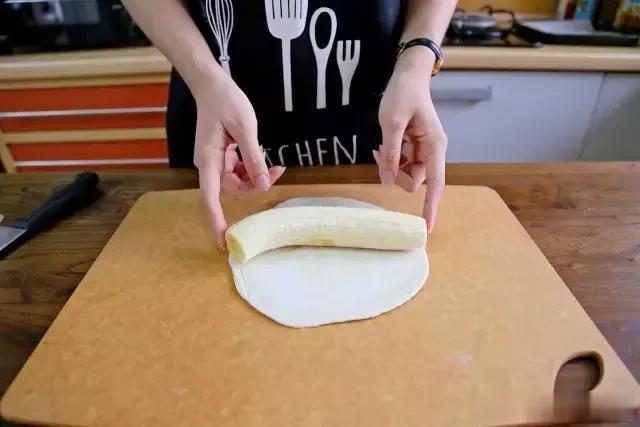 除了直接吃外,香蕉其实是可以化身超美味的甜点哦——就是用飞饼皮,裹着香蕉,切断,烤一烤就OK!