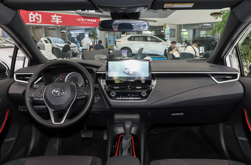 当你进入雷凌车内,就会被它简洁大气的风格所包围。中控台布局规整,线条走势流畅自然,大面积黑色奠定沉稳基调,细长镀铬饰条勾勒出别样质感。三幅式多功能方向盘,贴合手部曲线,两侧按键布局遵循操作逻辑,驾驶时操作轻松,便捷性拉满。车内软性材质覆盖率颇高,触感细腻,只是整体设计稍显传统,难以让追求个性的消费者眼前一亮。 座椅材质有皮质与织物之分,触感亲肤,透气性佳。主驾座椅可进行多向调节,适配不同身材驾驶者。后排腿部与头部空间充裕,乘客乘坐舒适。部分车内自动空调搭配后座出风口,能快速调节温度,自动模式下依据传感器精准控温,操作简易。
