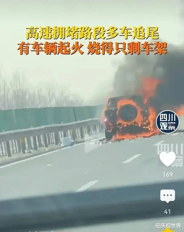 这两辆车停在路中间,后面的车根本来不及反应,一辆接着一辆又撞了上来。现场一下子乱成了一锅粥,尖叫声、喇叭声、哭喊声混成一片。更糟糕的是,旁边还有辆车也被大火给吞没了。火势越来越大,几辆车很快就被烧成了铁架子,黑黢黢的,看着就让人揪心。