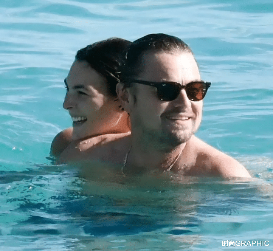 小李子则一身黑色泳裤,搭配金色项链,展现他标志性的“毛绒绒胸膛”,再加上Ray-Ban墨镜和浓密胡茬,成熟随性,散发着浓厚的魅力。