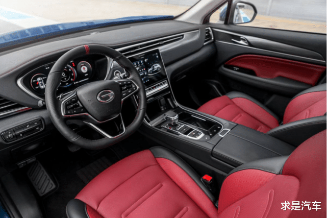 反观CS75 PLUS,内饰部分的人机工学上稍欠考量,硕大的中控台看起来很有气势,但对于乘员空间的侵占过于明显,黑红配色下更有强烈的压迫感,相比传祺GS4 PLUS开阳、敞亮的座舱,CS75 PLUS的车内空间,在感官层面就输了一筹。