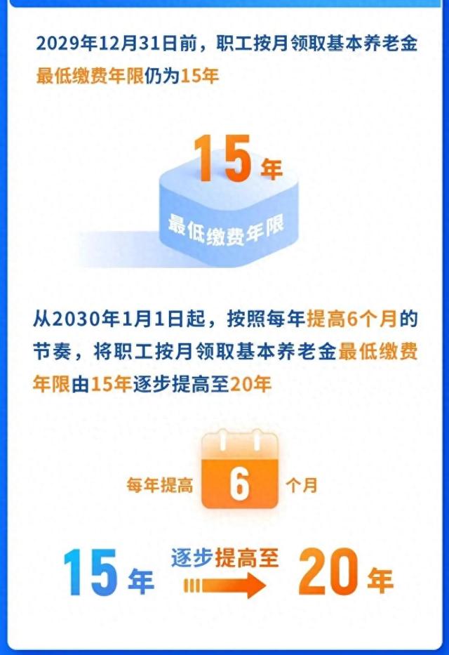 根据我国延迟退休的规定,领取养老金的最低缴费年限也将提高。不过,2030年以前还是维持15年的规定。从2030年开始,每一年提高6个月的缴费年限,到2039年将提升至最低20年。