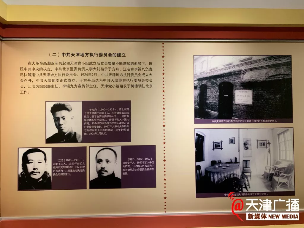 9月的一天,天津的共产党员陆续来到江浩家中,举行中共天津地方执行委员会成立大会。刘喻莲和江汰清以干家务活为掩护,在门口负责放哨,大会讨论了党在天津的具体工作方针和行动纲领,选举出了中共天津地委的领导核心。这重要的一天发生的重要事件,被中共天津历史纪念馆生动情景再现。