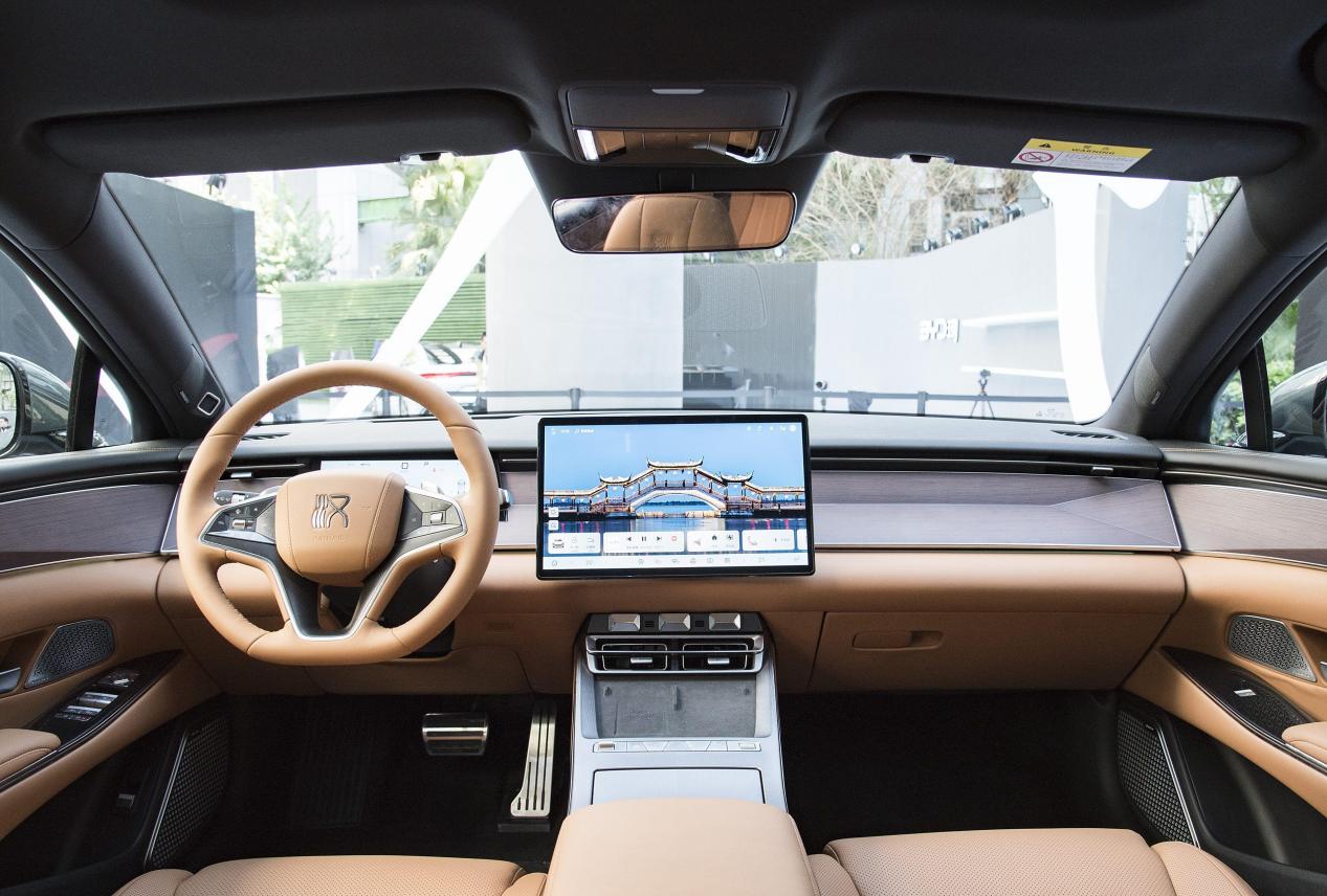 进入车内,简洁而不失科技感的内饰布局让人眼前一亮。棕色和白色两种内饰配色,满足了不同消费者的审美需求。HUD抬头显示、全液晶仪表、悬浮式中控屏以及最新的DiLink智能网联系统,则构建了一个智能便捷的驾驶座舱。更值得一提的是,“天神之眼”高阶智驾系统的加入,让汉L EV在智能驾驶辅助方面走在了行业前列。