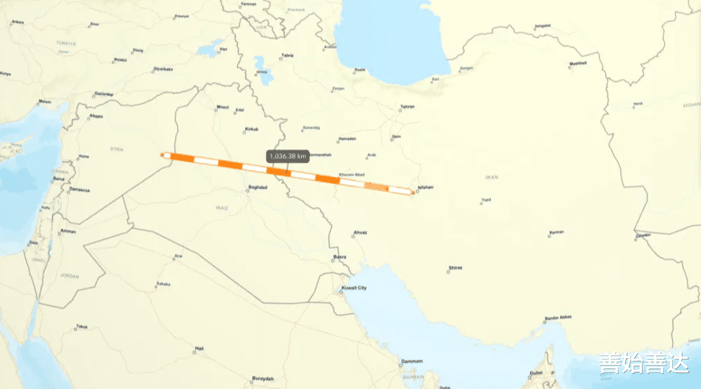 这样,一条空袭伊朗的空中通道被打开了。经叙利亚领空空袭伊朗核目标,距离上缩短了三分之一,下图。