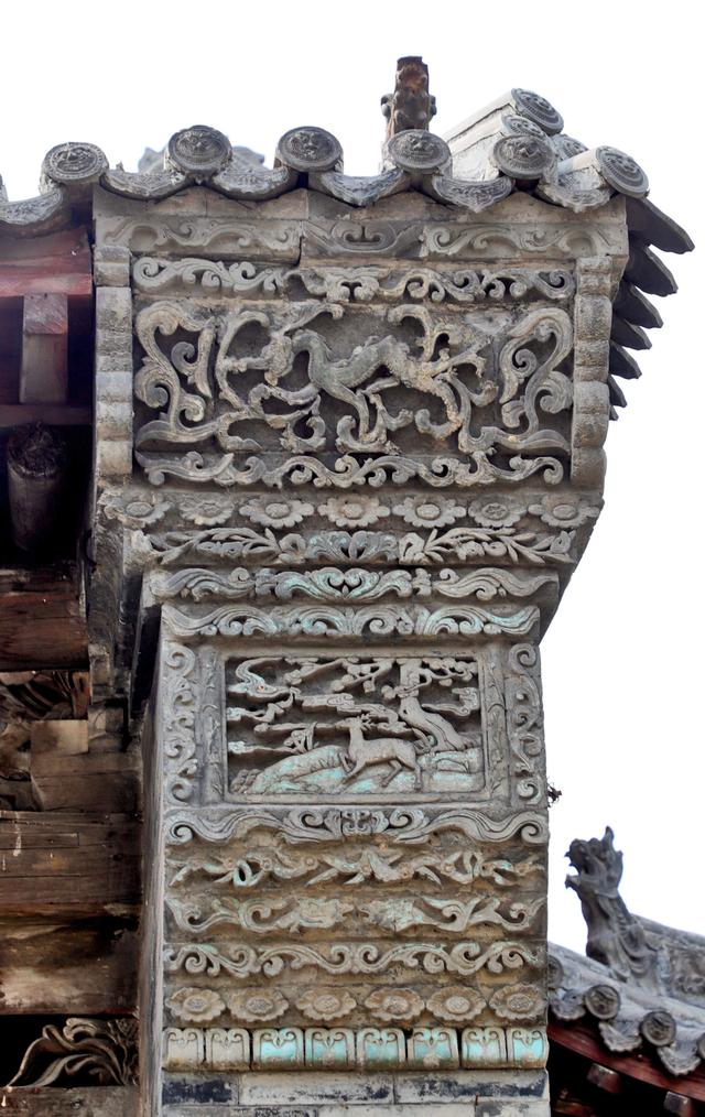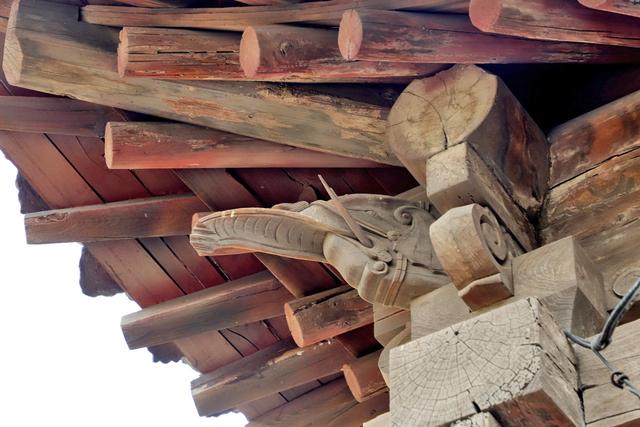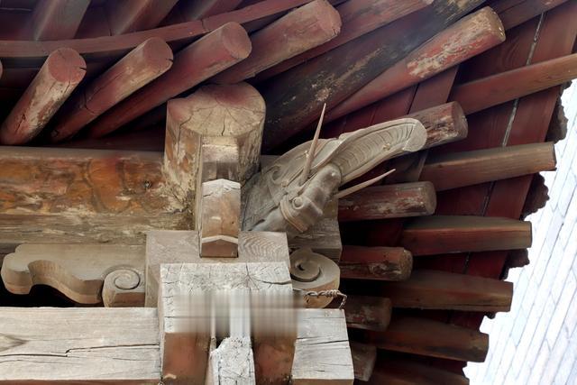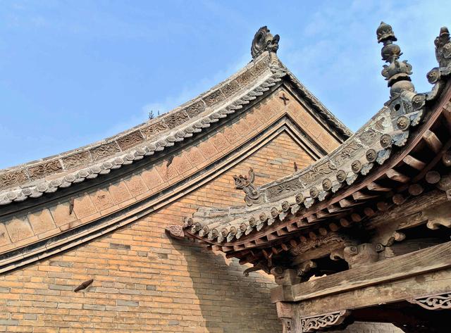 看鸱吻,大嘴咬着正脊,但这个是近年修缮时装上的新的。老的已在修缮时替换下放在介休博物馆里了。