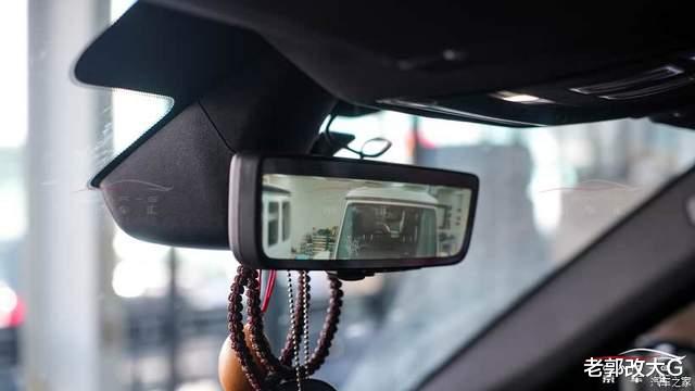流媒体后视镜的摄像头安装在车顶鲨鱼鳍里,亮度和角度都可以一键调节,适应不同天气和光线条件