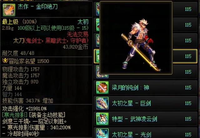这里主要说一下鬼剑士的5把太初武器特色,以及相对提升率!