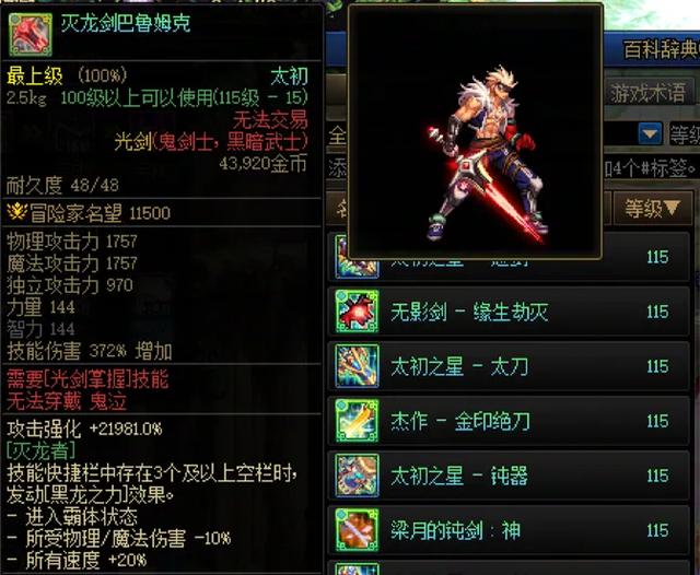 剑魂剑豪首推“巴鲁姆克”,而其他鬼剑士基本都可以选择“无影剑”!