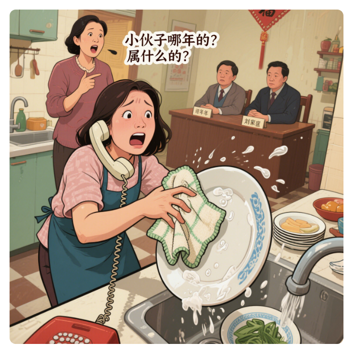 我差点把洗碗布扔出去。这哪是见家长,分明是三堂会审啊!我赶紧拨通刘颖的电话,听筒里传来嘈杂的背景音,隐约能听见一个洪亮的女声在问:"小伙子哪年的?属什么的?"