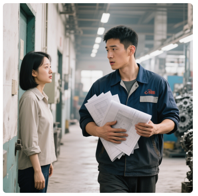 正说着,心刚抱着一叠图纸从走廊经过。这个平时在车间里能单手拆装发动机的大小伙子,一看到刘颖立刻像被按了暂停键,僵在原地不知所措。