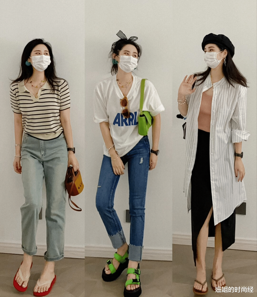 其次黑白的条纹衫也可以让整体看上去不矫情又保持清新感,十分有日系轻熟女郎的气质。开叉半裙更是能展现女性身段和魅力的单品,将熟女本身的气质展现出来。