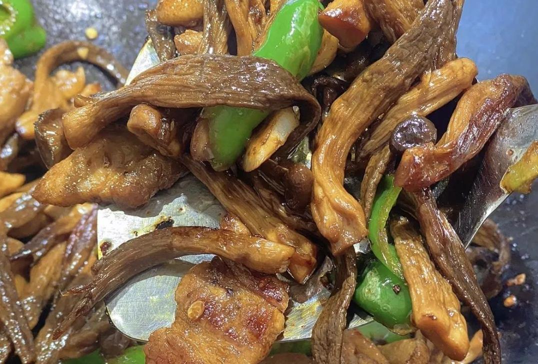 比如说,来自临济镇的孙龙飞,他的“烧椒鹿茸菇”让人惊艳,用的是当地新鲜的山野菌和家里种植的辣椒,经过传统的方式炒制,香脆可口。