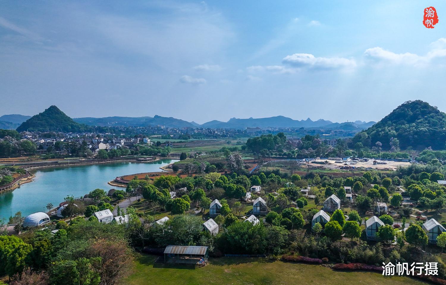 在贞丰众多的景点之中,三岔河国际露营基地更是美如画卷,所谓三岔河,实为北盘江、董箐河、三岔河并汇之地,巧妙融合了山地、草坪、森林与湖泊等自然景观,加上远处布依族村寨的炊烟,恍若置身于古代文人诗画之中。