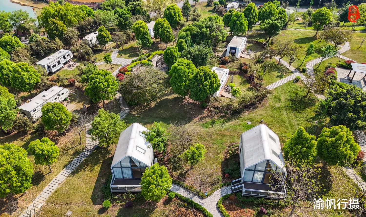 雅居群落的全景落地窗,将湖光山色揽入怀中,投影仪在墙上绘出光影的梦;归巢、宿兮、悉尼群落的湖景房,以别致造型与超长玻璃天窗,把星河引入梦乡;帐篷酒店与木屋别墅则隐匿于草坪,轻奢帐篷搭配天幕与炉具,还原最纯粹的露营体验。