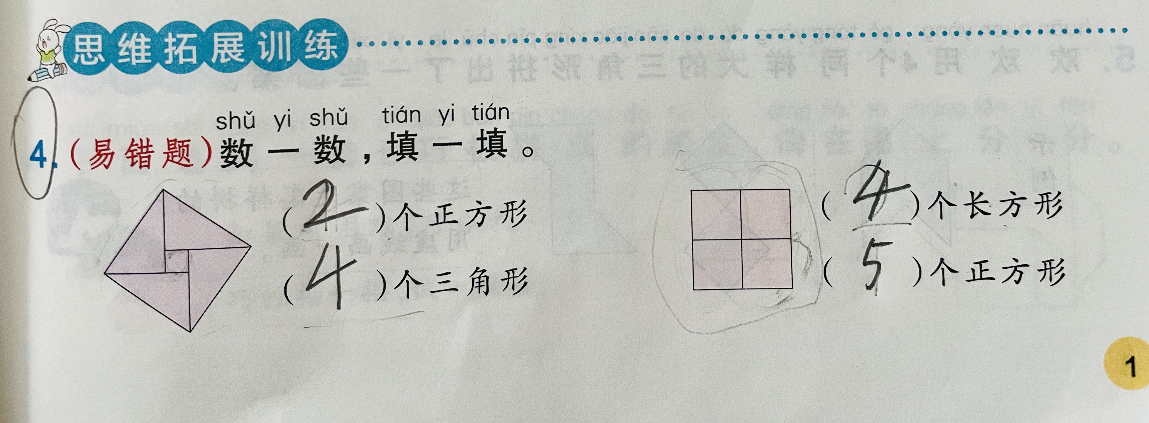比如下面的题目,既有正方形、又有长方形,要数全面,还不能把长方形和正方形混淆。