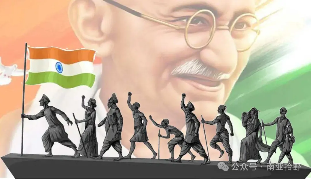 印度独立建国的过程是一个漫长而复杂的历史进程,作为20世纪全球非殖民化进程中的重要里程碑,其过程和结果充满复杂性与争议,其一甘地的非暴力不合作运动开创了以道德力量对抗暴政的先例;其二,英国“分而治之”政策与宗教矛盾激化促成了“印巴分治”的灾难性后果,也为印巴之间后续一系列矛盾埋下了祸根,成为导致双方互信缺失的根源;其三,未经过彻底的革命而实现的独立,残留着古典印度的“种姓毒药”,导致印度独立后缺乏支撑长期发展的新思想、新观念。