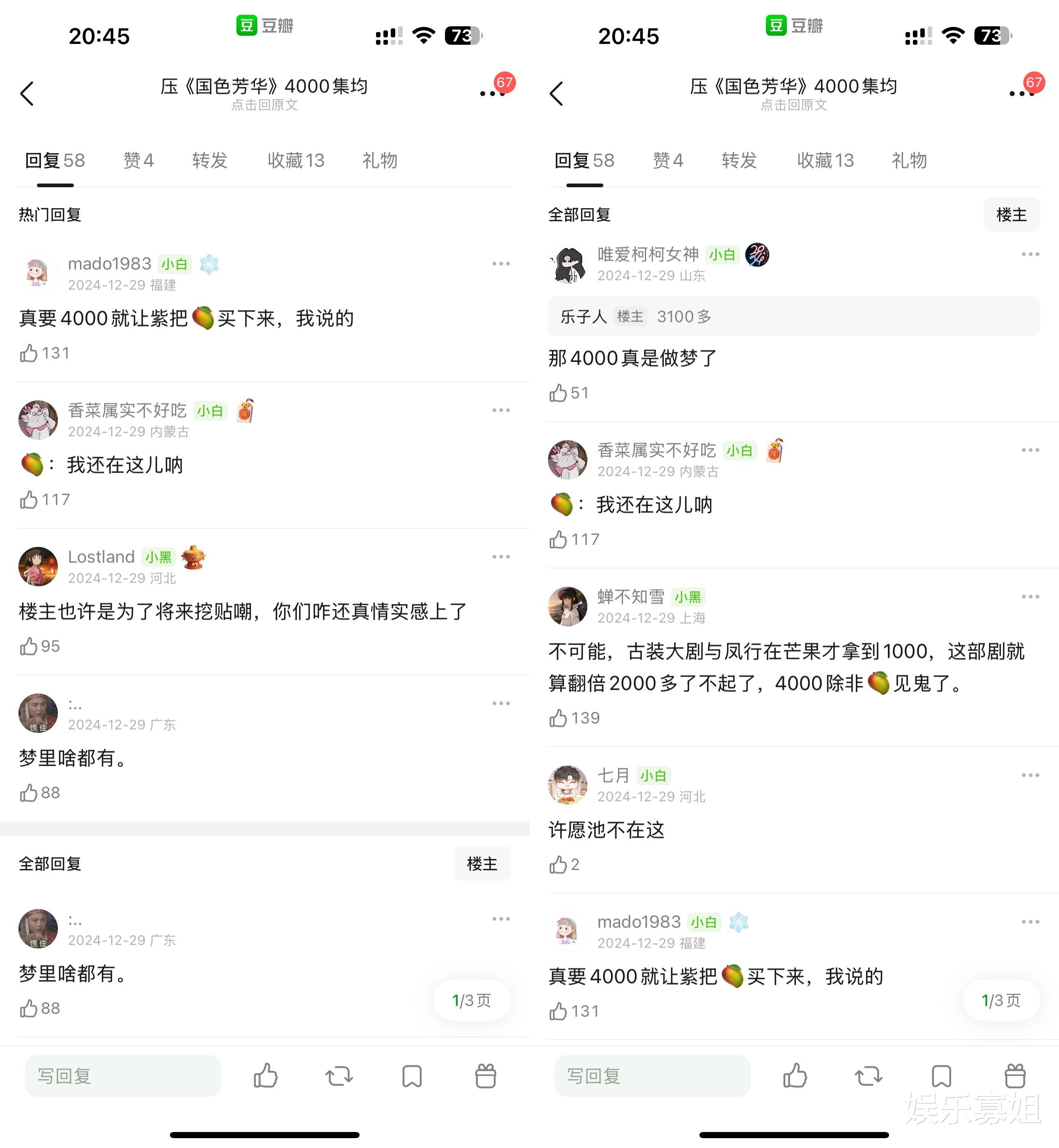 不少网友表示:“不敢想象要是在其他三个平台播能断层爆成什么样”、“杨紫稳定输出,每年一部爆剧!作为演员投资回报率也太高了吧”、“杨紫李现二搭就是这么牛!三搭本子快点递过来,经得起市场检验的bg之光”等等。