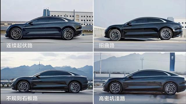在不规则石板路(主打不规则,不是石板分布刚好等于轴距那种)、不规则高密度坑洼路(坑的大小和深度不一、距离也不一)、扭曲路、连续起伏路测试中,仰望U7是如履平地,极快的调节速度,坐在车内如果不看外面,是几乎感受不到真实的路况。