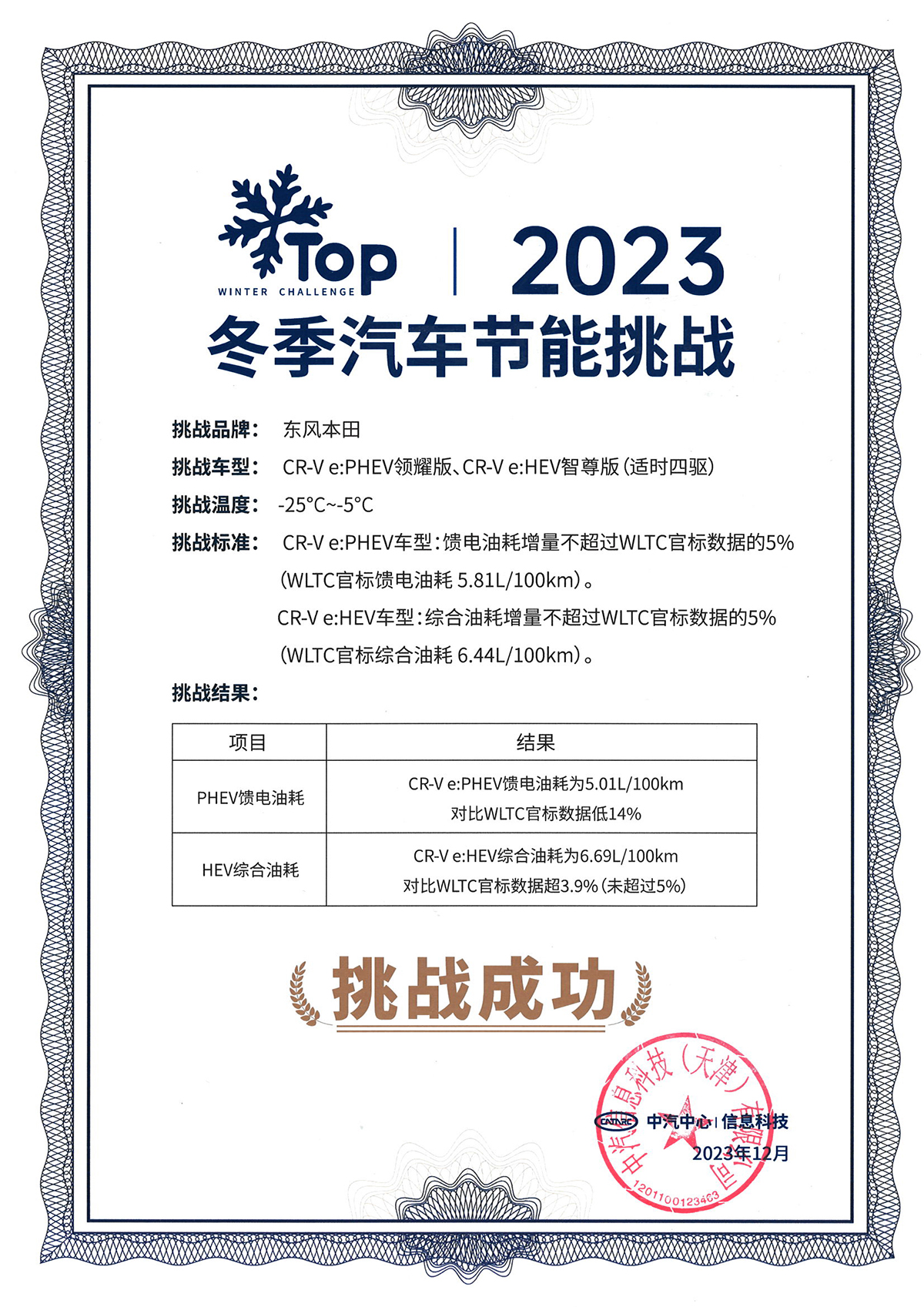 全新一代CR-V e:HEV官方提供的数据显示WLTC馈电油耗为百公里6.44L,在北方低温且地附着路面下,全新一代CR-V e:HEV的实际百公里油耗为6.69L,仅比官方提供的数据高3.9%,这个数据在同级车型中绝对能打。