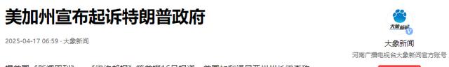 大象新闻——美加州宣布起诉特朗普政府