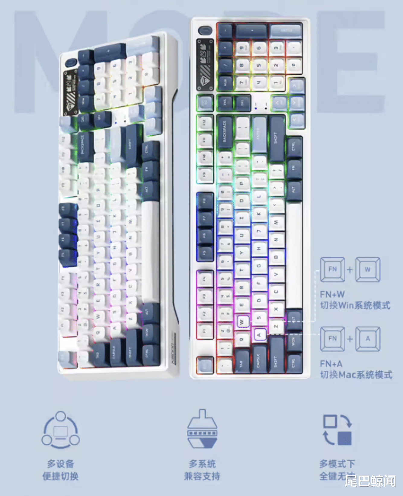 采用全新OMA高度双色注塑键帽,支持音乐律动和按键宏自定义等功能。