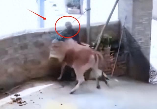 这头黄牛看起来很温顺,可是为何会突然向人发起攻击,变成夺命的凶器呢?从视频画面可以看到,老人就像往常一样在打扫牛棚的卫生,突然之间,这头体重有500公斤的黄牛,发了疯似的撞向老人,老人一个踉跄被撞到了围栏上。