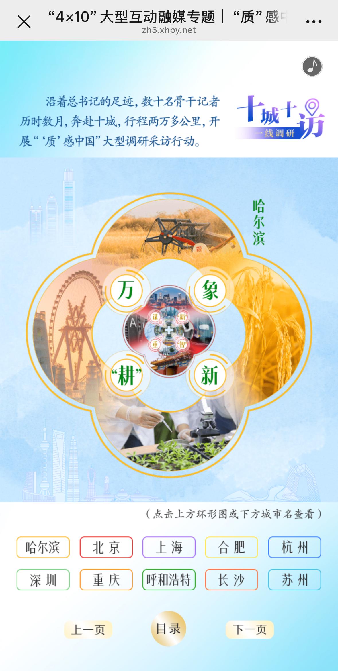 “十城十访”一线调研,记者沿着总书记的足迹,奔赴哈尔滨、北京、上海、合肥、杭州、深圳、重庆、呼和浩特、长沙、苏州十城,通过中国东西南北中各地生动的“地方之治”,激发和凝聚更好推动和支撑高质量发展的磅礴力量。