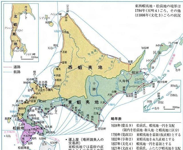 1644年在松前藩的提议下日本方面绘制了《正保御国绘图》。在这张地图中首次把北海道及库页岛等原本由当地原住民居住的地方划入日本版图。1679年松前藩在库页岛的久春古丹建造临时性的渔民居住所。明末清初的战乱使中国一时对库页岛无暇顾及,于是日本方面趁机在岛上多次进行勘察和冒险活动。当日本利用明末清初库页岛上形成的权力真空进行渗透扩张之时原本地处东欧平原的沙皇俄国不远万里跋涉扩张到了太平洋沿岸。