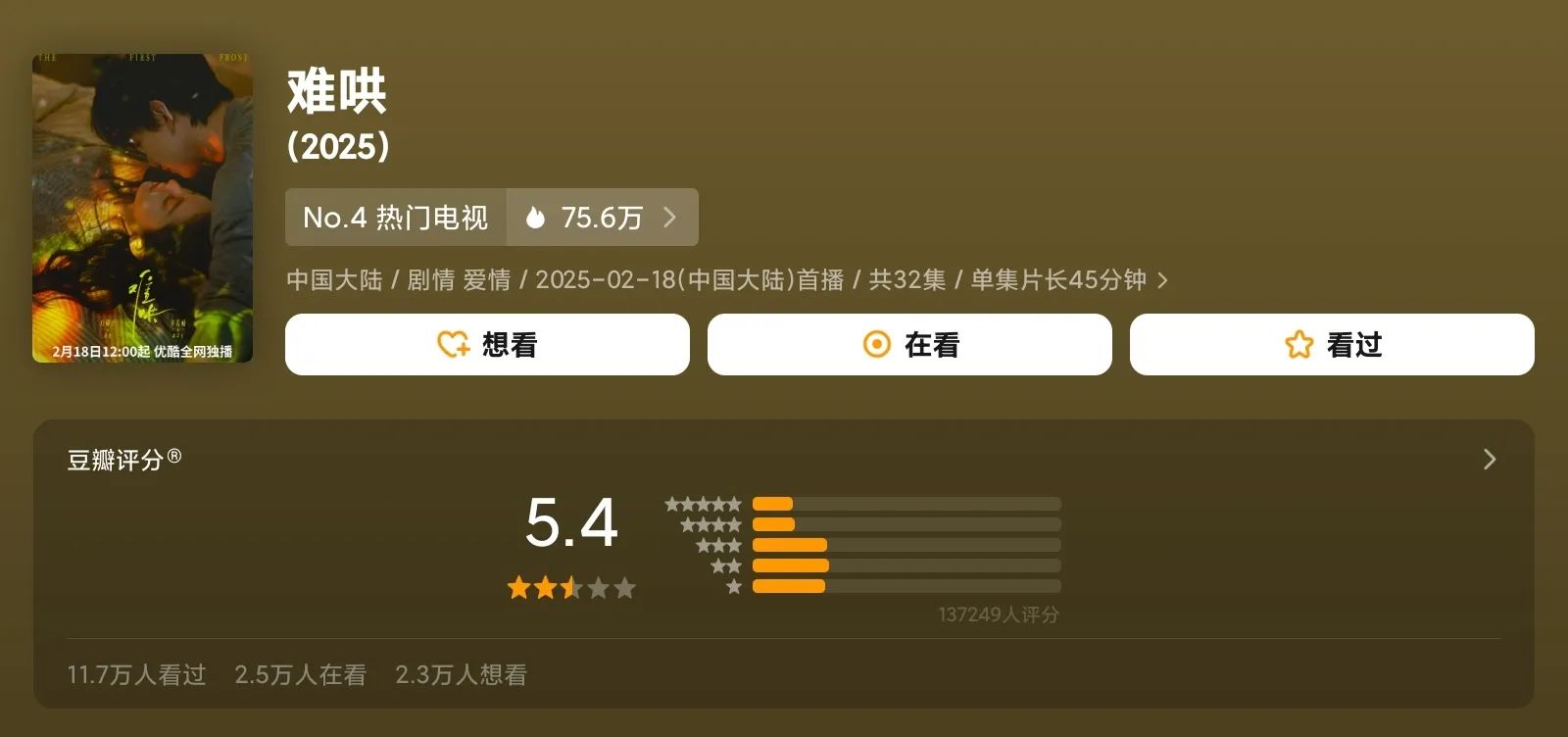 但无论如何,总体来看,这部剧依然算是2025年3月的一部爆款。