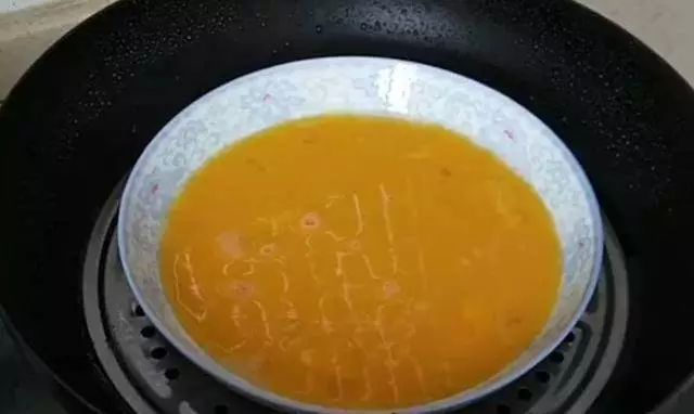 4、另取一个盘子,在盘子里面刷上一层食用油,然后将搅拌好的鸡蛋倒入盘中;然后起蒸锅,先烧开水,再将鸡蛋的盘子放入蒸格中,盖上盖子蒸10分钟;