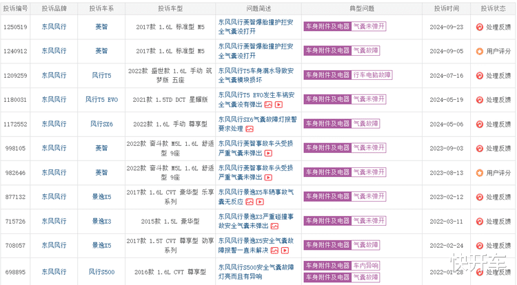 东风风行在销售数据低迷之余,售后投诉的量却一直不断,爆发了客户对品牌的信任危机。根据第三方网站的投诉数据来看,东风风行旗下车型的相关投诉,大多都集中在动力系统、电气系统和底盘等涉及用车的问题,甚至还存在安全气囊未弹出,导致司乘人员受到不同程度人身伤害的问题。