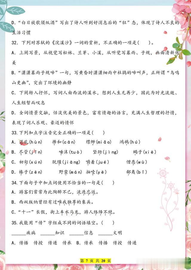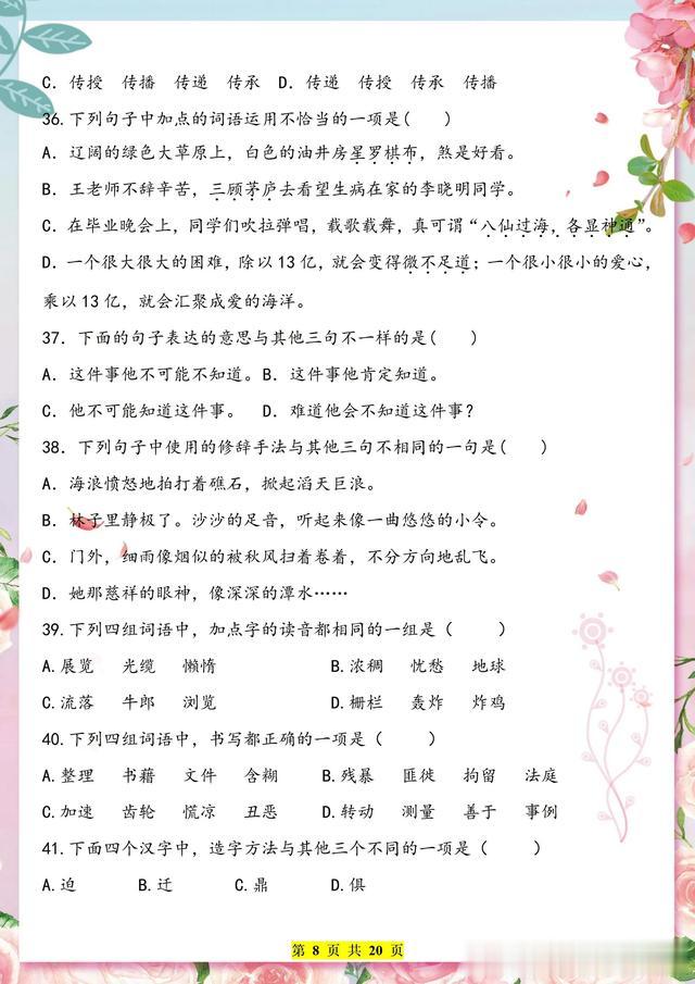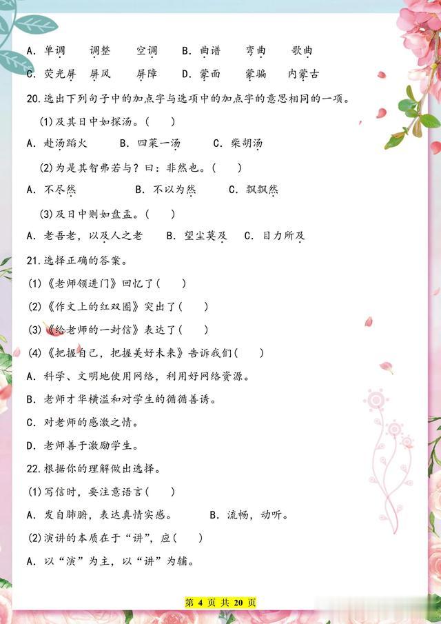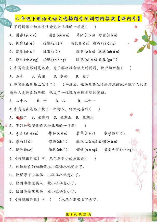 语文老师:六年级下册选择题专项训练大全(课内外),考点全覆盖