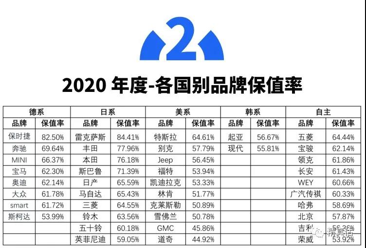 近日获悉,2020年度各国别汽车品牌保值率排行榜出炉了,此次共有40个品牌上榜,其中日系车的表现最为亮眼,雷克萨斯、丰田和本田汽车的保值率都在75%以上,而德系车也是表现不错,保时捷、奔驰和宝马汽车都非常保值,而美系车方面,保值率表现出色的是特斯拉、别克和Jeep 汽车,国产车也是表现不错,排名前十的品牌保值率都超过了50%,而领克和长安位居前五,传祺、哈弗、吉利以及荣威等品牌,也都是比较保值的。官宣!2020年汽车保值率榜单出炉:40个品牌入榜,丰田长安很亮眼!