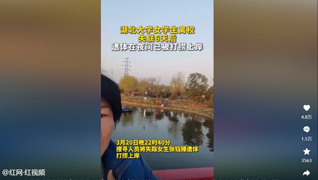 直到今天凌晨二十分,救援队在湖中打捞上了一具女尸,经过家属跟学校人员的确认后,证实这就是走失的19岁女大学生张钰臻。