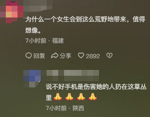 面对该网友提出的疑惑,另一位网友则怀疑女生可能是受到他人侵犯,将手机扔在了这里。