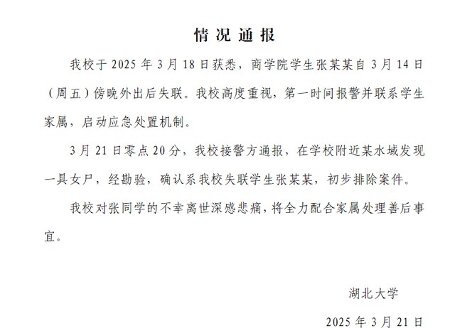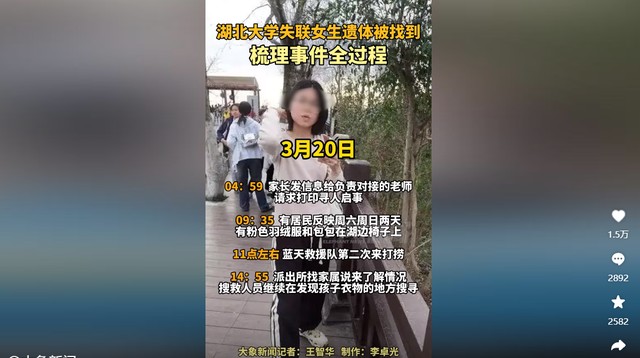 “19岁湖北女大学生失联后死亡”
