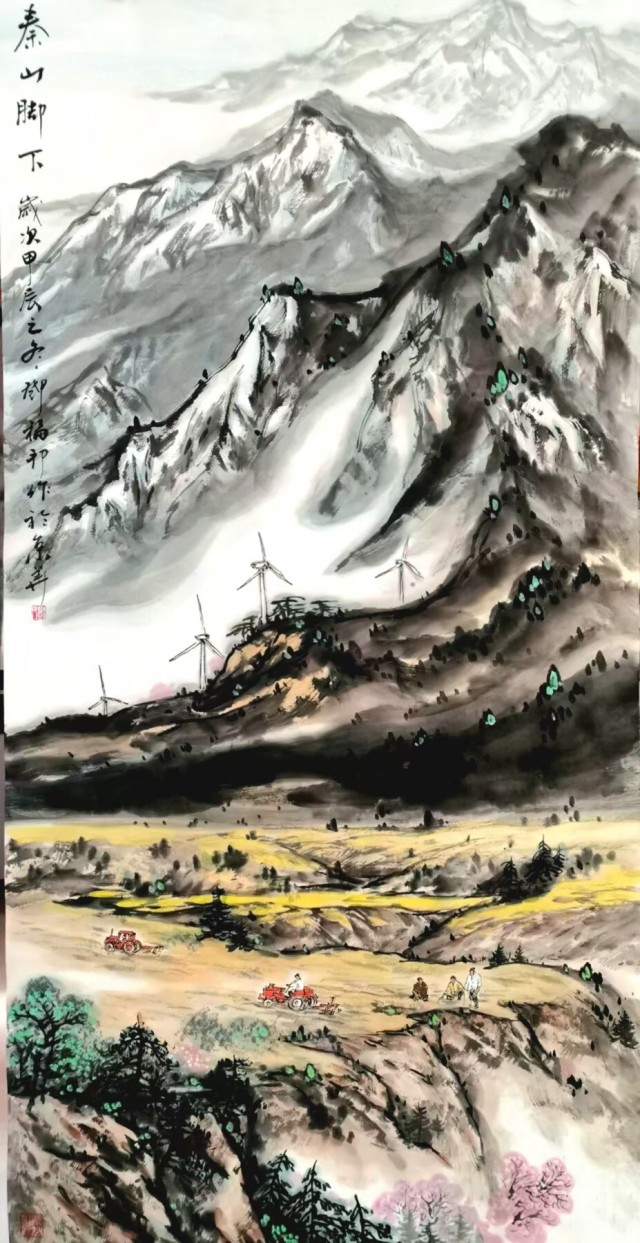 秦山画派的创始人是邓福邦,他不仅是中国著名的书画家、收藏家,还是中国国家博物馆特邀研究员、中国艺术研究院书画创作员。邓福邦以“道化丹青”为核心理念,将老子“道”的精神内涵融入书画创作中,强调艺术与自然的和谐统一。他的作品以浑厚大气、风格兼容南北著称,既有传统山水画的笔墨韵味,又融入了现代艺术的创新元素。
