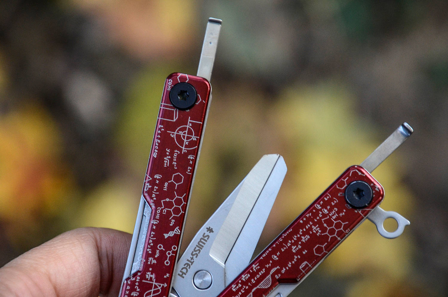闭合状态,附属工具都从手柄外侧展开,单独使用起来非常方便,双手柄带来更加扎实的握持使用手感。五个附属工具,两长三短,一共8种功能。