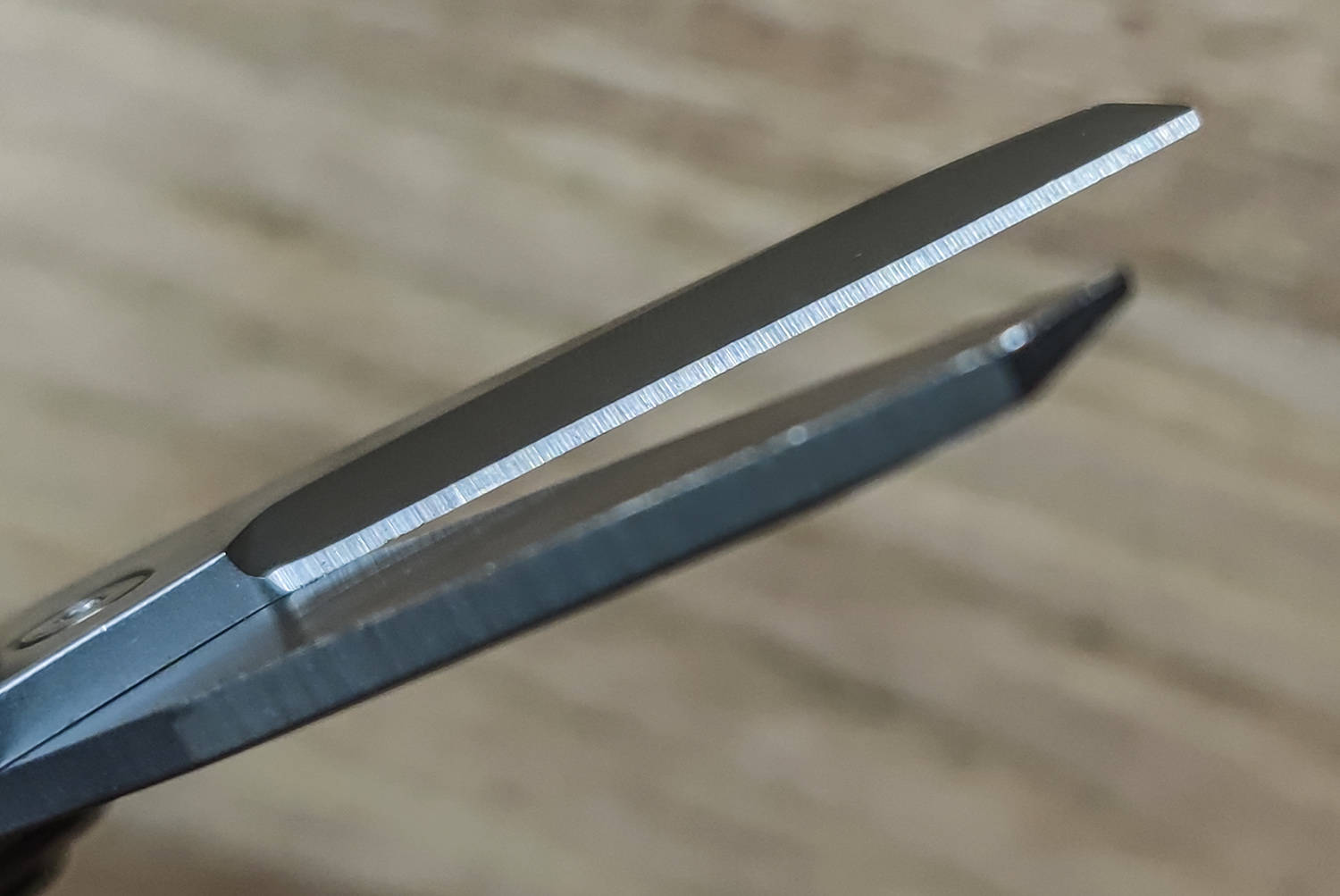 剪刀单片厚度达到了2mm,剪切线全长32mm,垂直开锋,刃角约为60°,两条剪切线贴合紧密,保证可以剪切较为硬厚的物体。