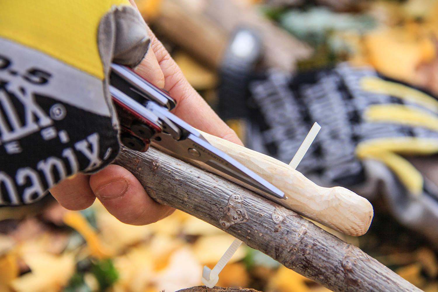 另一个长工具为三合一功能,公制厘米刻度尺,方便在户外进行测量,选择合适尺寸的天然材料,户外露营使用,方便制作各种物品。