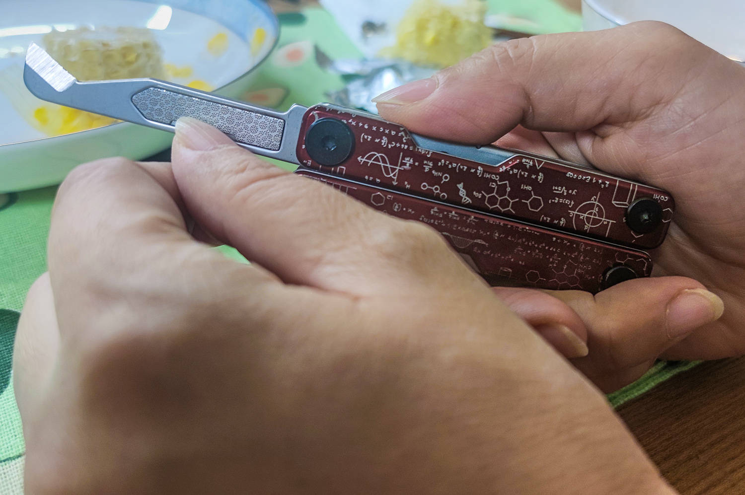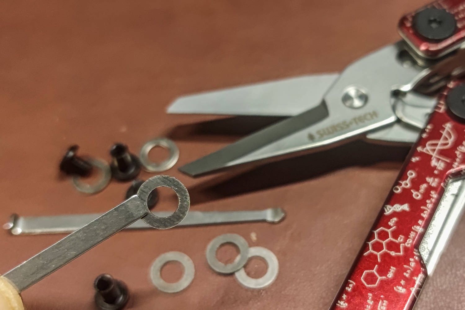 各个工具的转轴都很稳定,全开、全闭状态都很紧,不晃不摇;开合过程阻尼适中,带有弹性助力,体现了大厂风范。