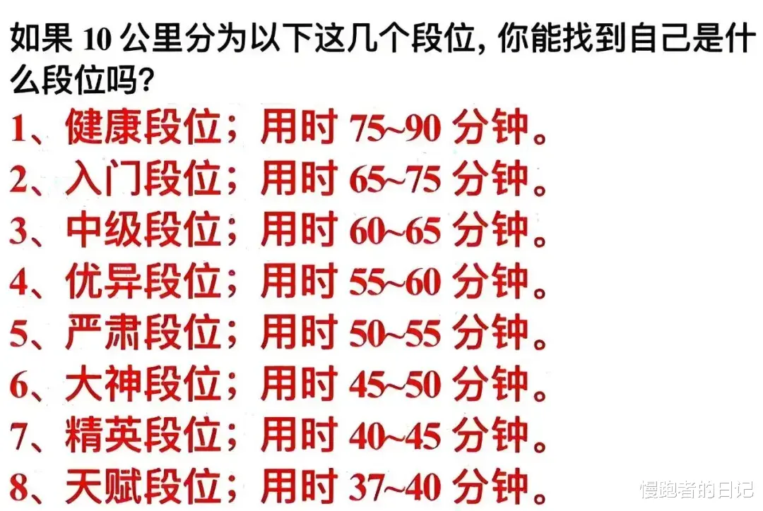 不过,这也只是数据的一个参考分析,并不能作为衡量每一个人能力的标准,就像之前网上出现的一张关于10公里不同级别的划分一样。