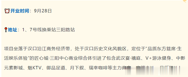 最新消息显示,武汉三大地铁商业项目将于7月27日、7月28日开业,与此同时,总投资700亿、世界顶级冰雪主题文旅城项目,也将于9月30日盛大开城,这是该项目的全球首秀,备受全城关注。恰逢国庆长假即将来临,这三个地铁商业项目选择在国庆节之前开业,时机很好,刚好可以迎接国庆节客流高峰消费人群。