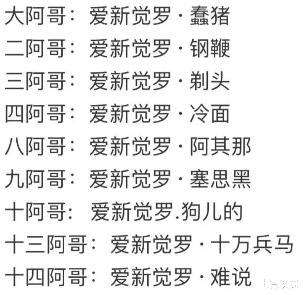 阿哥们的名字也被玩梗的网友根据他们的性格特点和为人处世取了外号↓