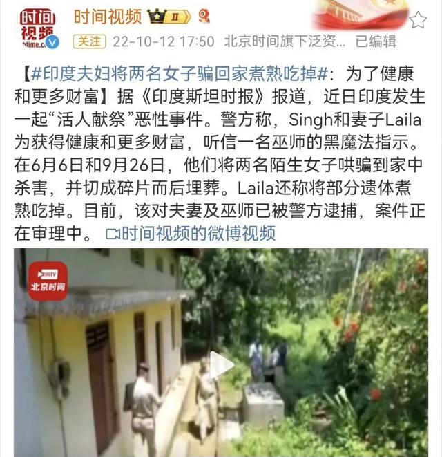 2022年,印度一对夫妇杀害2名女子,声称这样可以换取财富;