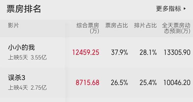 小结:《误杀3》碰上《小小的我》,商业片打不过文艺片,颇有意思。